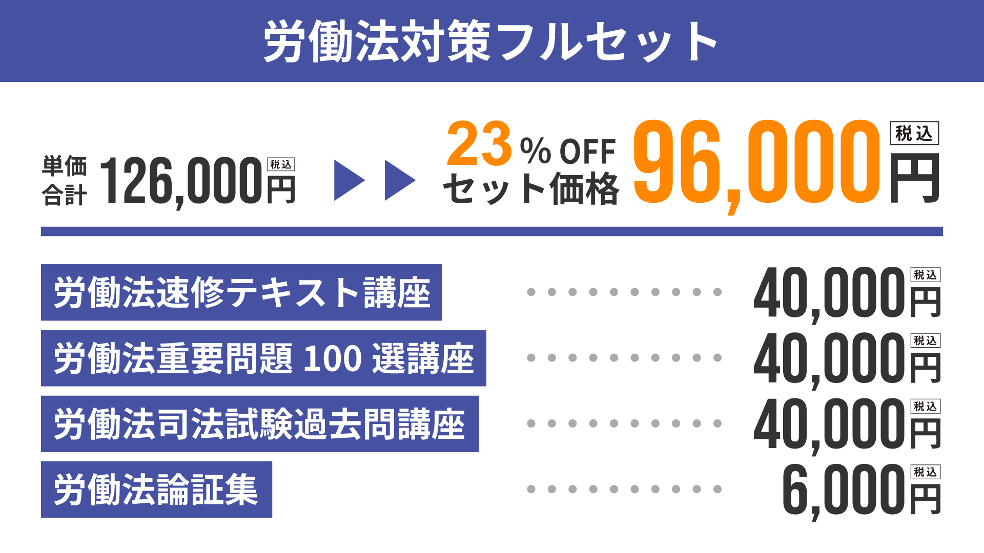 また、司法試験対策セット1(定価240,000円)を購入した後に、差額である120,000円をお支払いいただくことで、司法試験対策フルセット(定価360,000円)に切り替えるというように、セットプランのアップグレードも可能でございます。