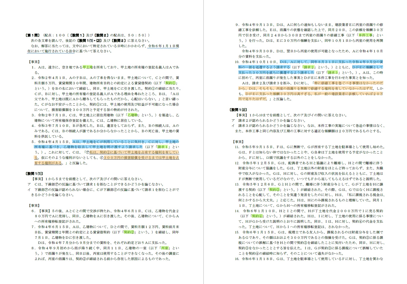 本システムでは、予め搭載されている司法試験及び予備試験の論文式過去問を任意に選択して演習に供することができるほか、受講者様が保有する問題文(PDFに限ります。)を任意にアップロードして演習に供することができます。