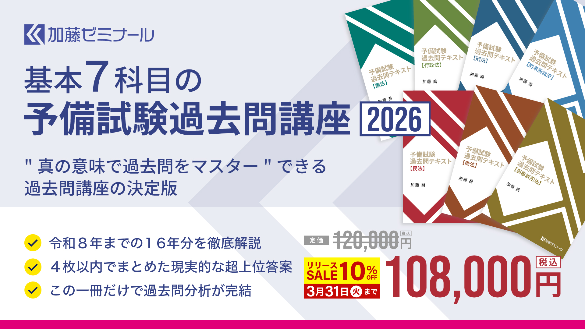 全年度(平成23年~令和8年)を取り上げる予備試験過去問講座の決定版!