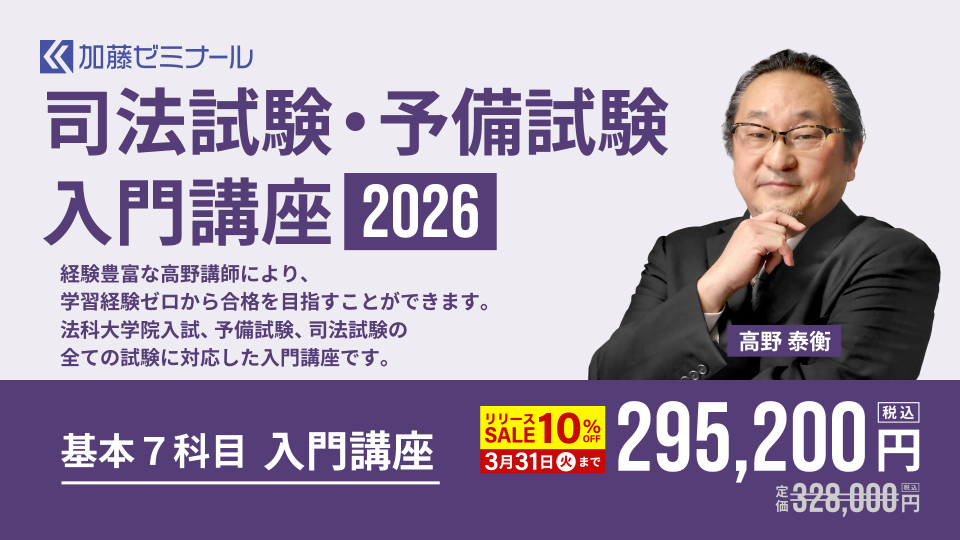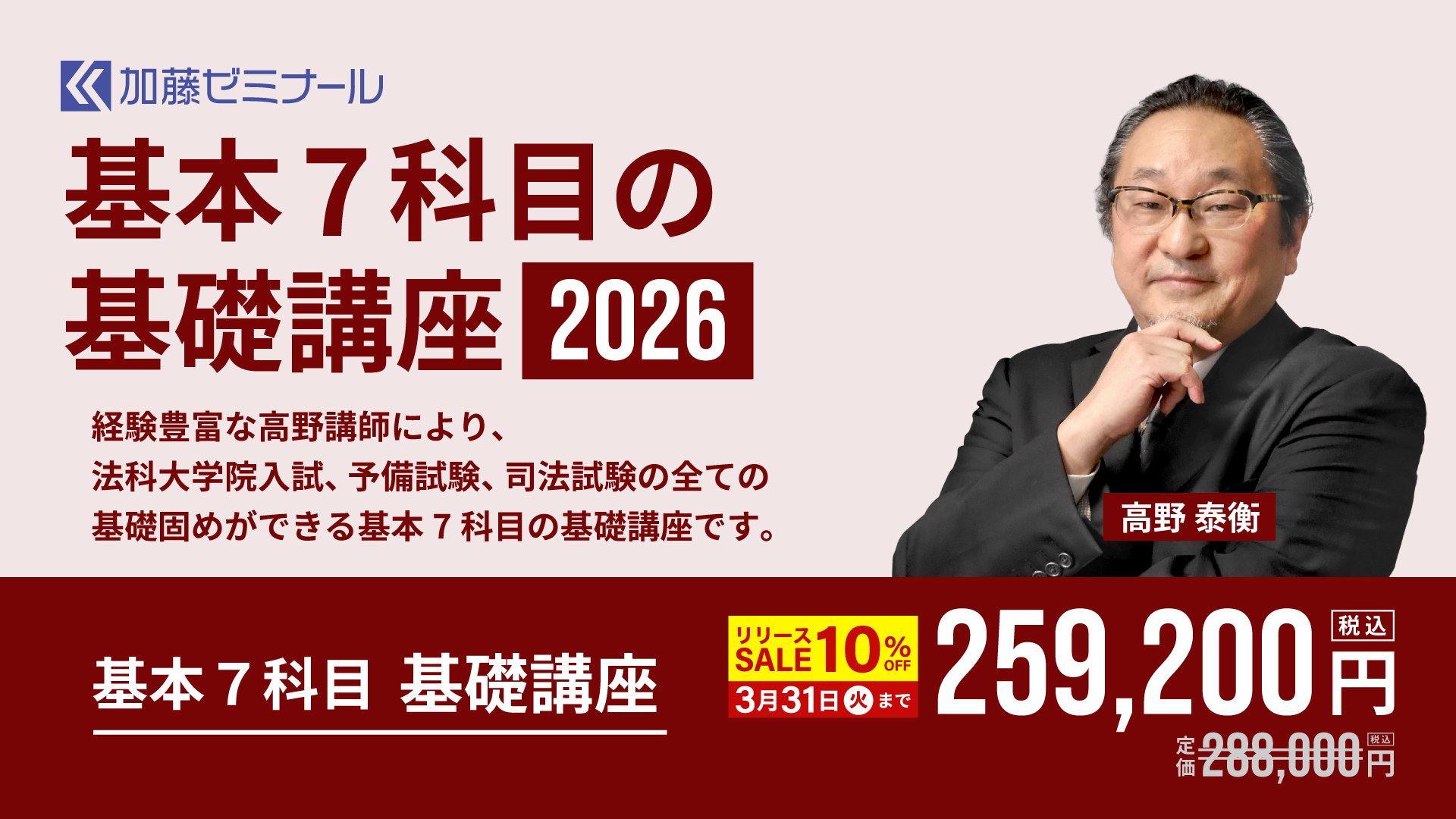 経験・合格実績が豊富な高野講師による基本7科目の入門講座(導入講義20時間+基礎講義260時間)だけを受講していただけるプラン!