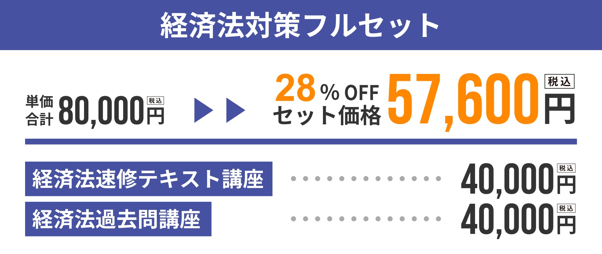 加藤ゼミナールでは、同一系統に属する複数の講座を購入なさる場合(例えば、経済法講座を2つ購入する場合)、大変お得なセット価格で購入して頂けます。