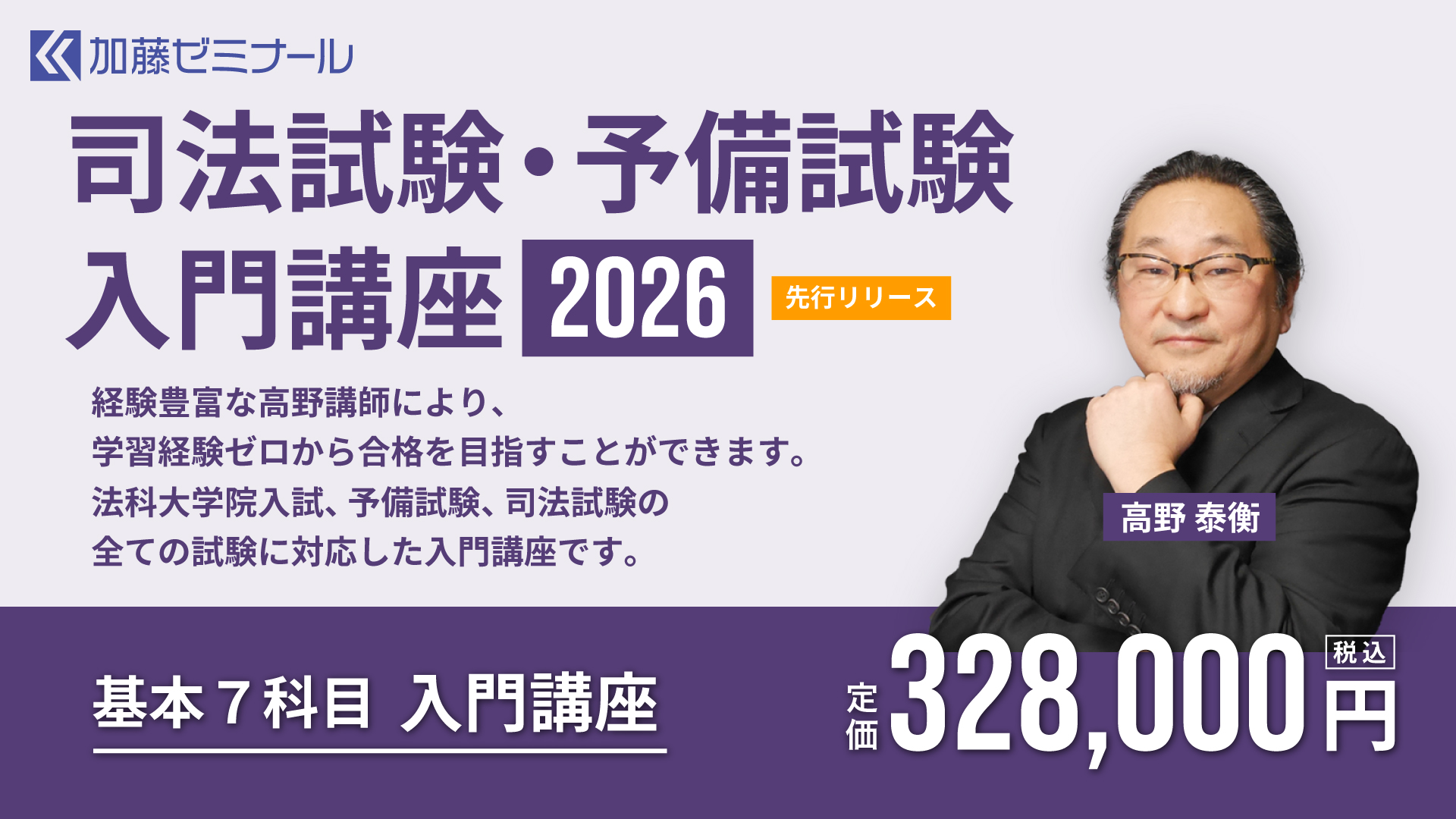 加藤ゼミナールの司法試験・予備試験入門講座を受講したことのある方は、最新版の司法試験・予備試験入門講座を20%引きでご受講いただけます。