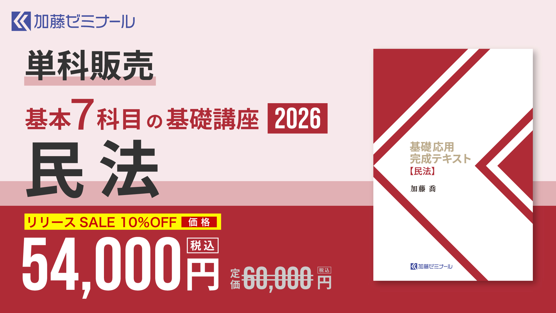 定価60,000円(税込)→54,000円(税込)で基礎講座「民法」を単科購入していただけます。