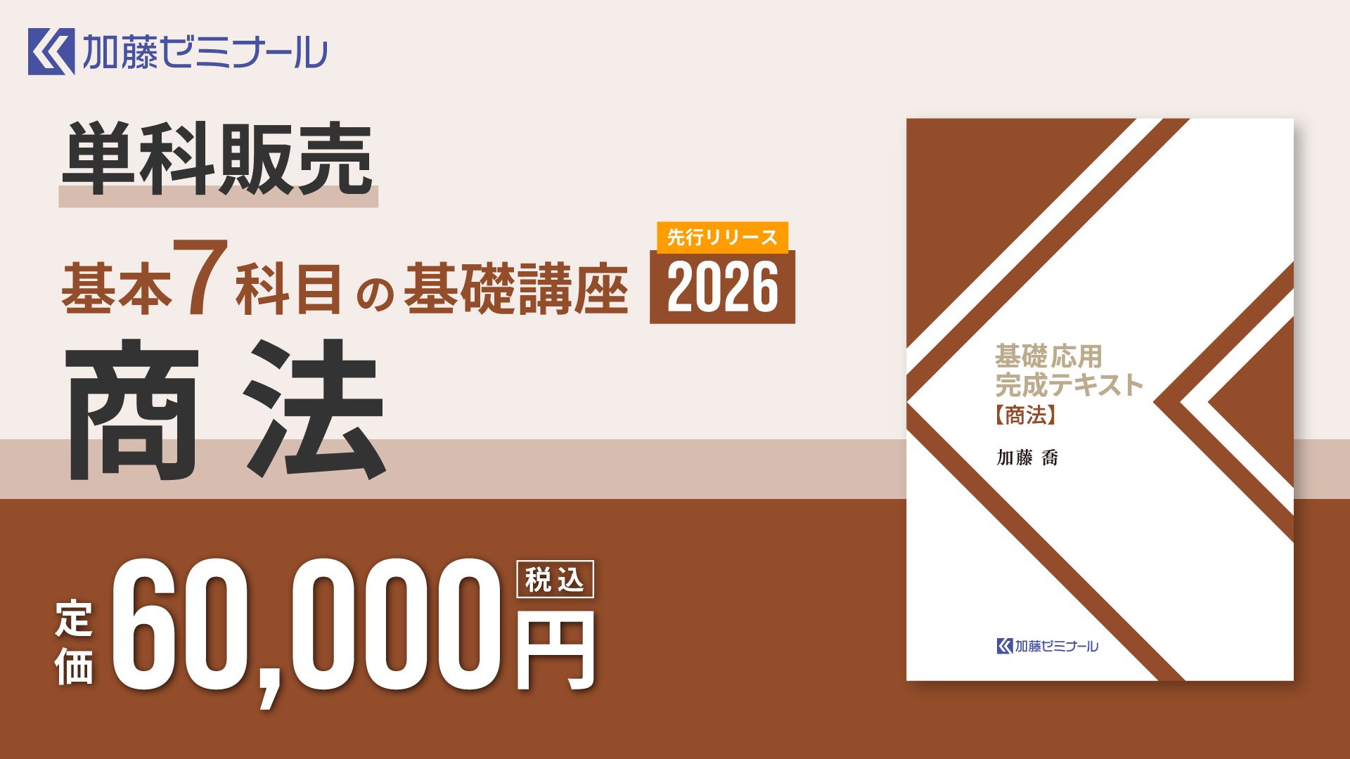 こちらのページは、高野講師が担当する基礎講座「商法」の単科購入用のページでございます。