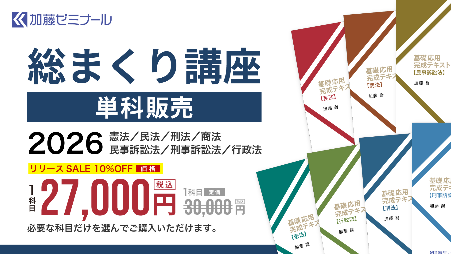 加藤ゼミナールでは、同一系統に属する複数の講座を購入なさる場合(例えば、基本7科目の試験対策講座に属する2つの講座を購入する場合)、定価合計の最大35%オフの大変お得なセット価格で購入していただけます。
