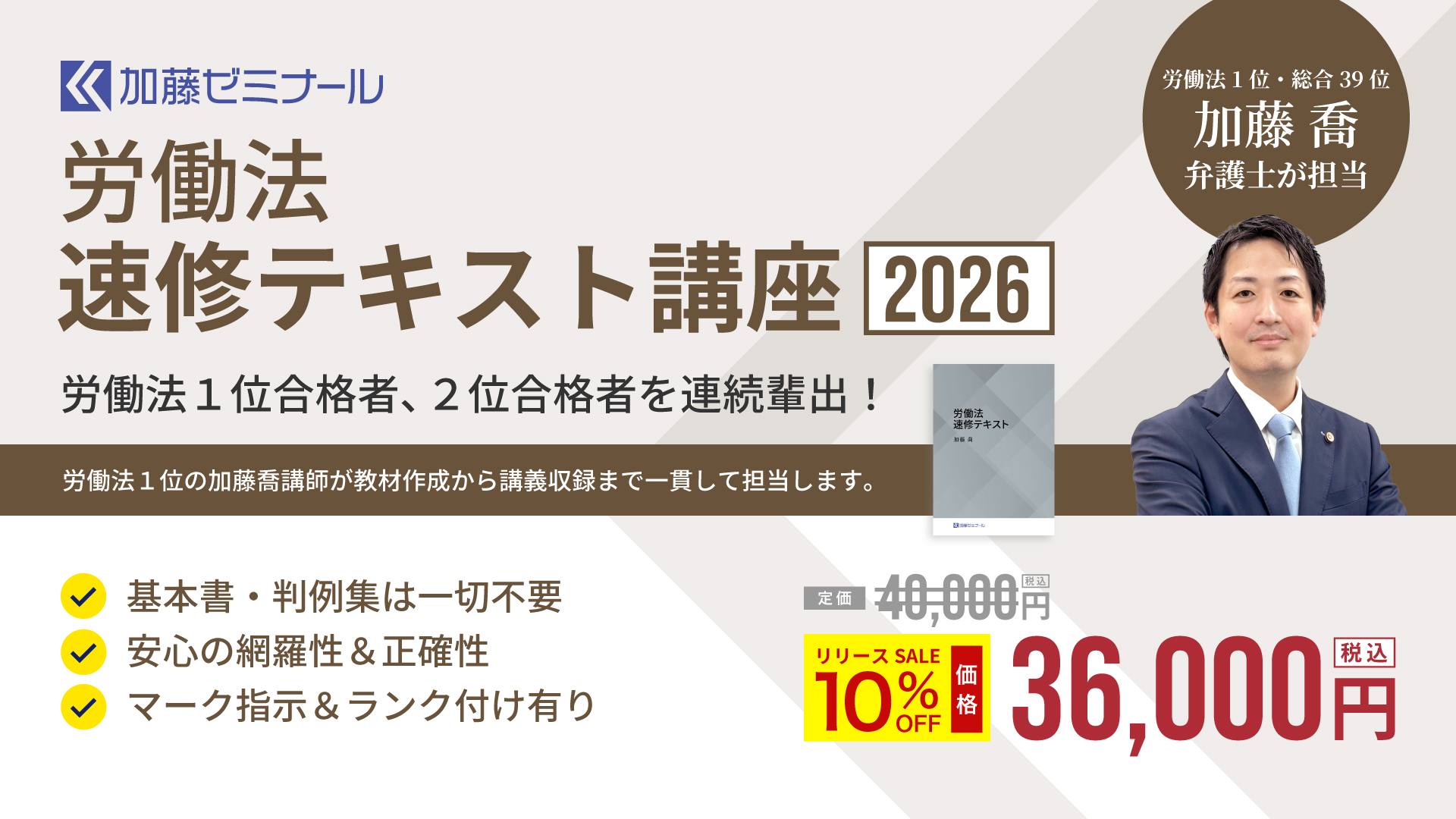 司法試験労働法1位の加藤喬講師がいちから作成した完全オリジナルテキスト