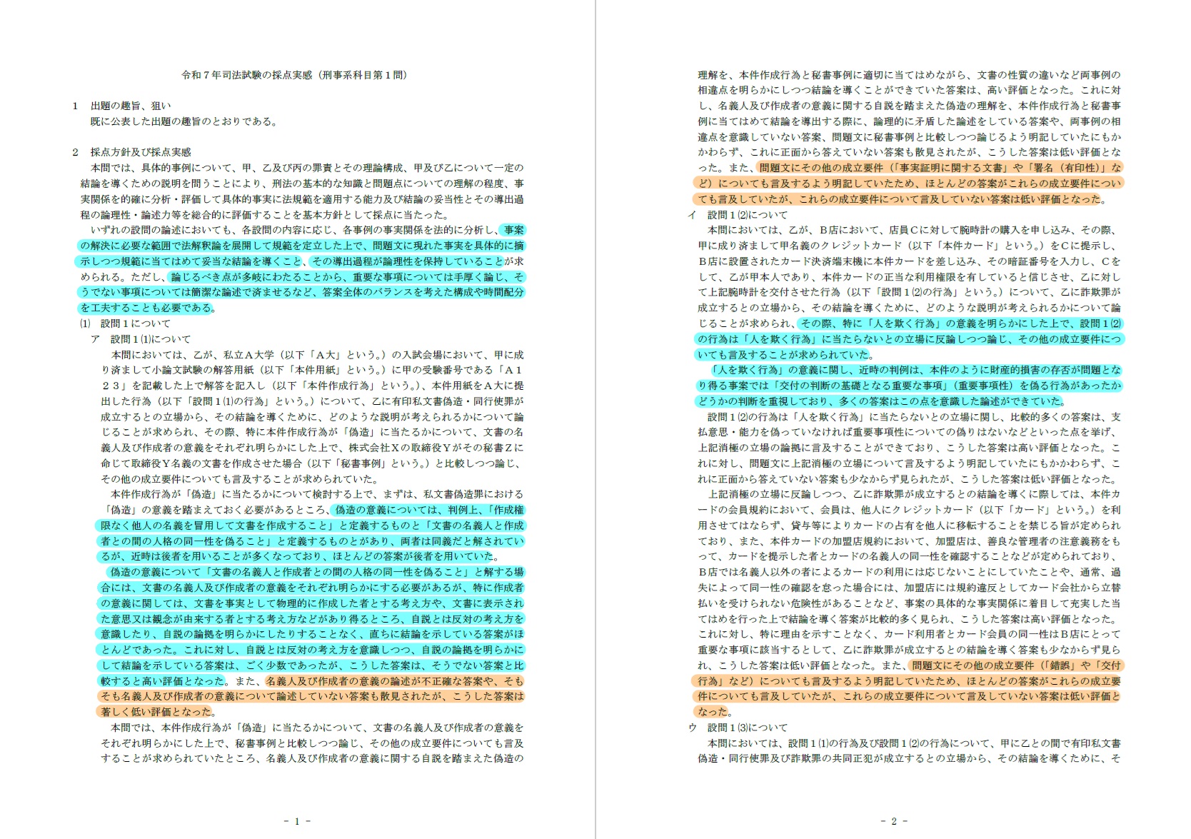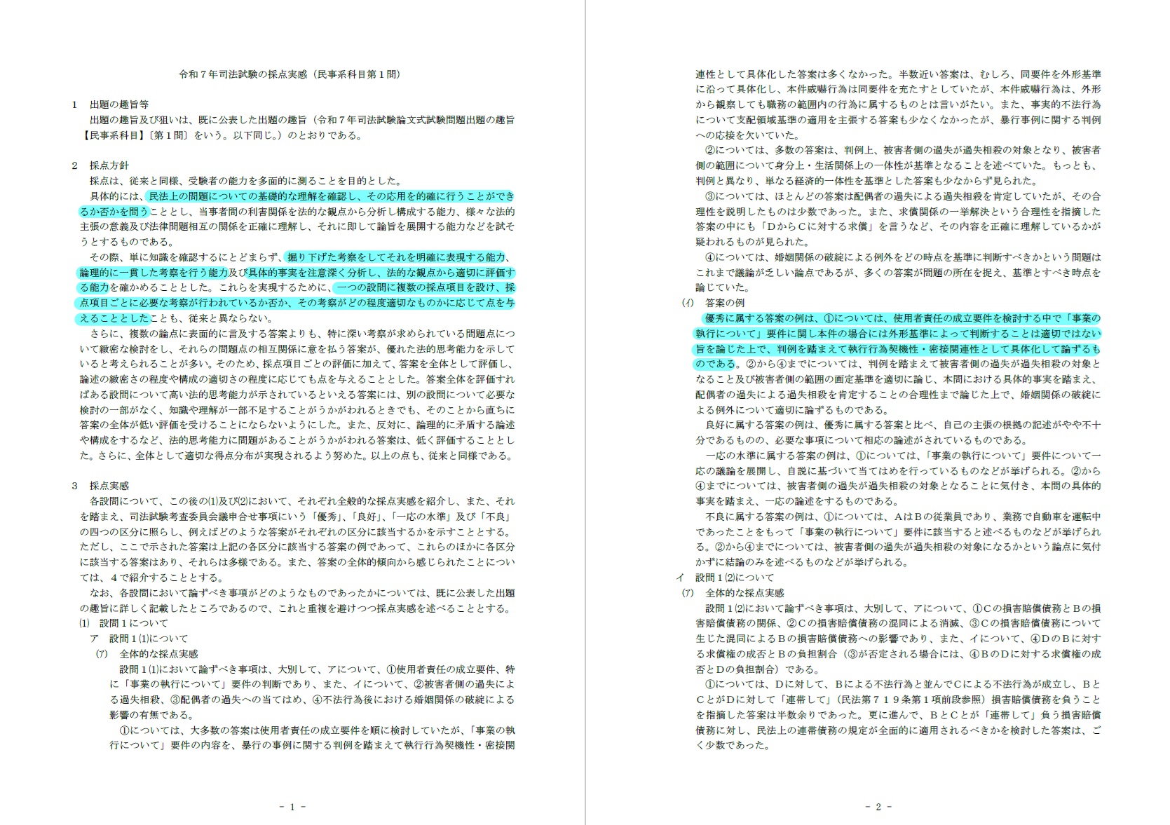令和7年司法試験の採点実感のうち、科目や問題の違いを跨いでも通用することなど、重要と考えられる重要箇所にマーカーを引いています。