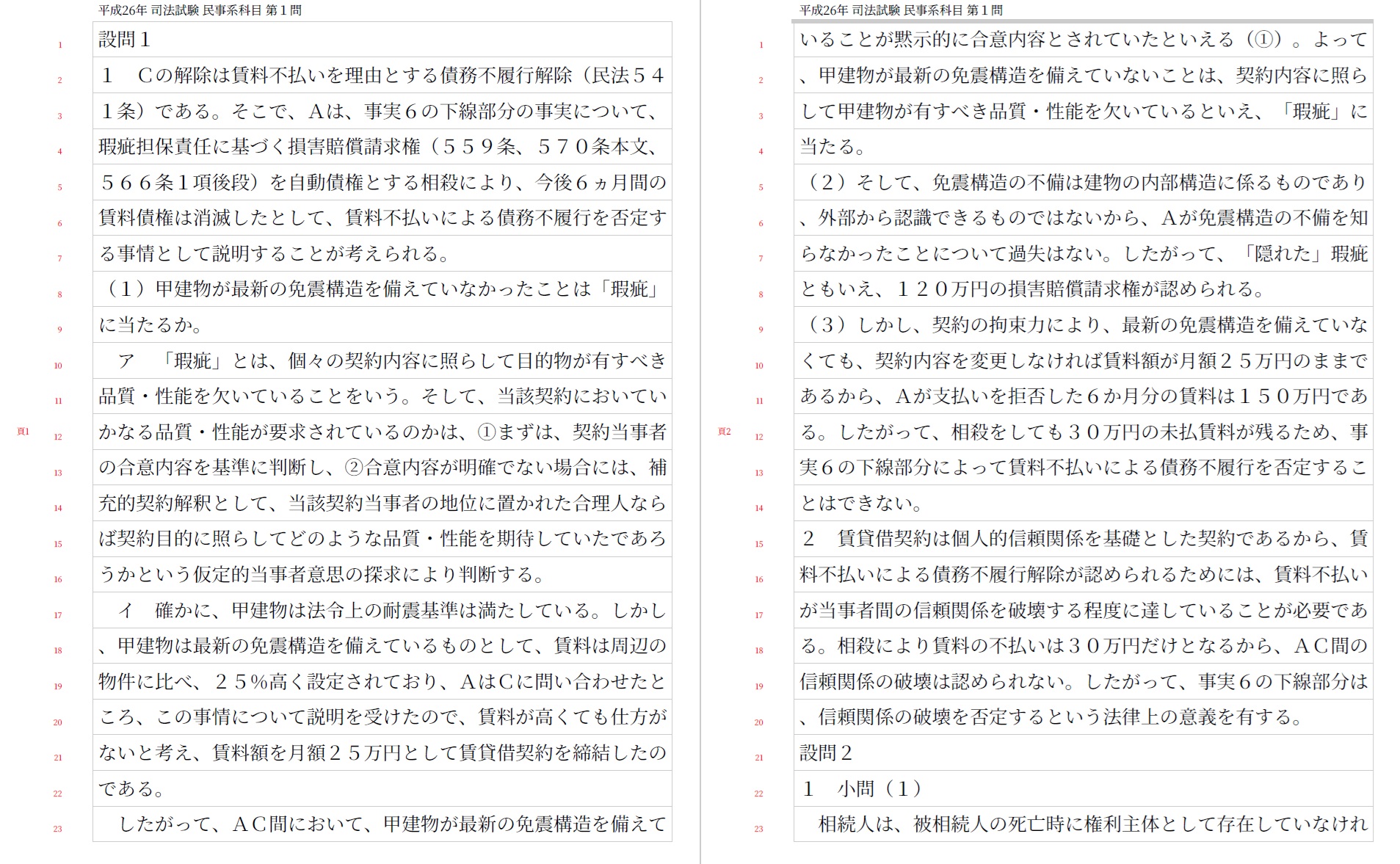 平成26年司法試験の私の再現答案を弊社CBTシステムの答案に落とし込んだものを公開します。