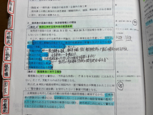 最終的には、司法試験の数日前から労働法重要問題100選講座のテキストを一からすべて読み直し、自分なりに答案構成して弱点を発見した後、司法試験当日に付箋を貼っていた弱点箇所の論証を見返しました。