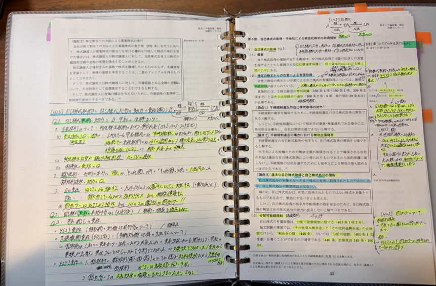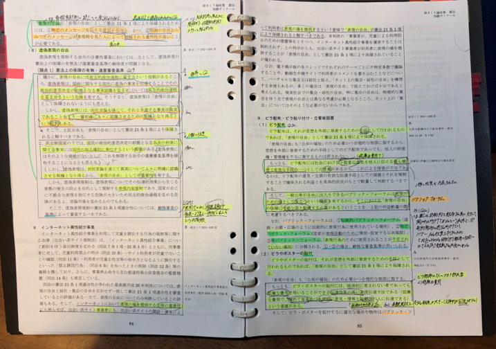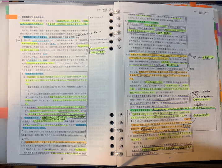 講義を受けるにあたってマーク指示の動画に従いテキストのマークも行っていましたが、講義を聞いた上でのメモ等は専ら総まくり論証集の方に反映するようにしていました。