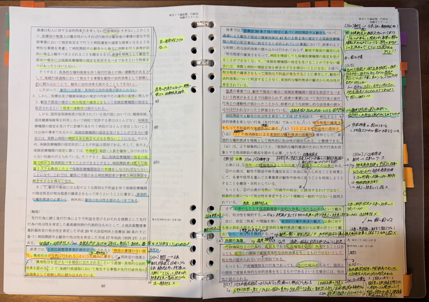 入門講座は別の塾で既に受講していたため、総まくり講座では主に知識のアップデートや理解の薄い部分の補充、採用する学説の変更等を行っていました。