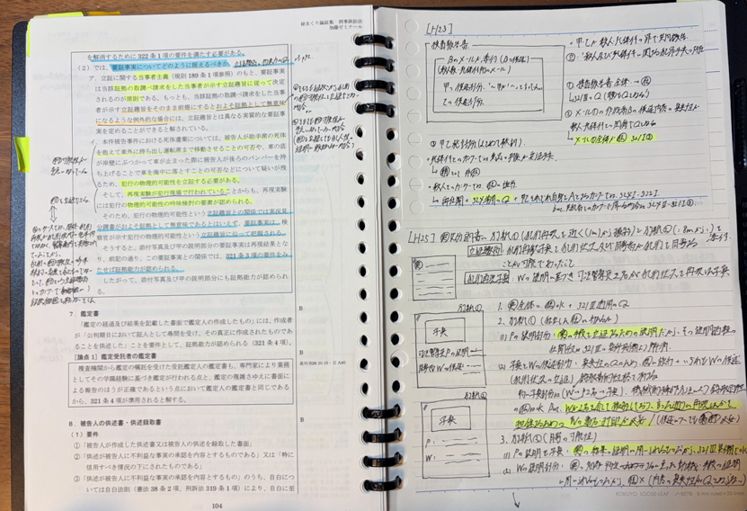 私は論証集の方に過去問のある程度の内容と論証の使い方や当てはめのフレーズ・ポイントを加筆することで、会場でこれさえ見れば過去問での論証の流れや当てはめが完全に分かるようにしていました。